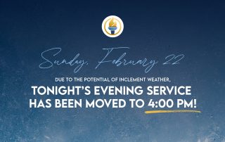 ATTENTION: Due to the potential of inclement weather, tonight's evening service has been moved to 4:00 PM! ✅ There will be a brief Adult [...]
